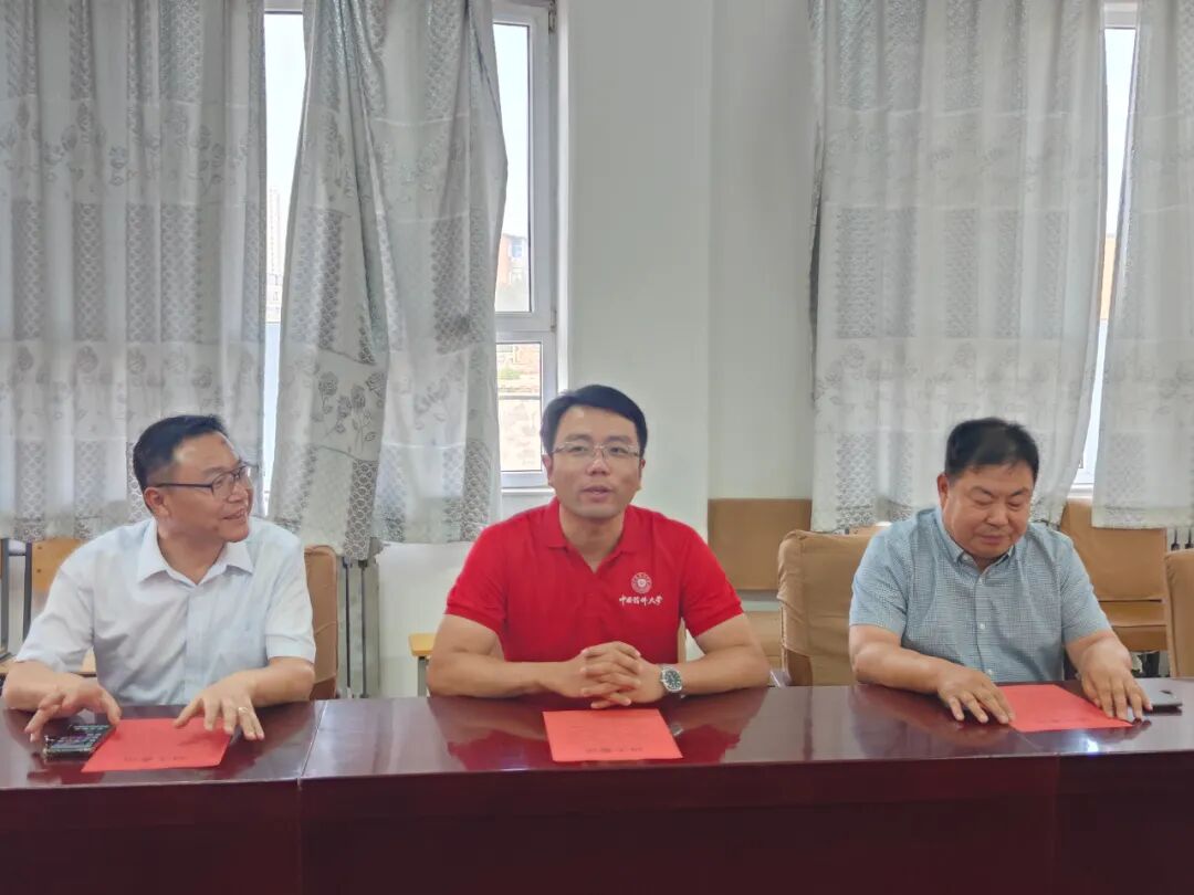 (本网讯 孙同友)6月26日,中国药科大学“优质生源基地”授牌仪式在我校行政楼会议室举行。中国药科大学团委书记、河北招生组组长张杨彬等一行三人代表中国药科大学为我校授牌。泊头一中党总支书记、校长姚玉堂等领导班子成员参加了授牌仪式。