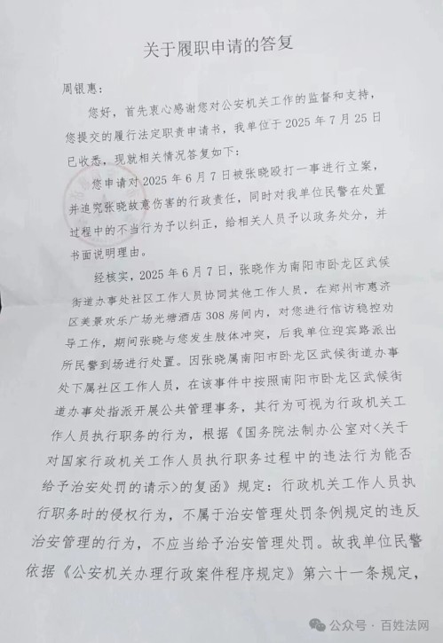 根据《城市居民委员会组织法》,居委会委员属基层自治组织成员,其身份性质与公务员截然不同。郑州市惠济分局以“张晓系公务员”为由推诿,实为对法律的曲解。这种将“公务员”标签凌驾于法律之上的做法,不仅违背《治安管理处罚法》的平等原则,更助长了特权思维——难道公职人员违法即可逍遥法外?