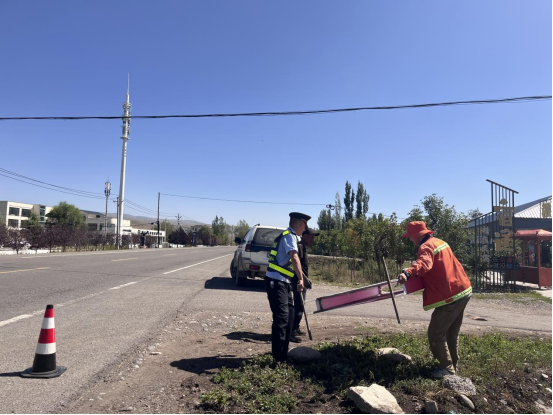 随着国庆、中秋双节临近,为优化辖区重点国道路域环境,消除道路通行安全隐患,保障群众出行安全畅通,近期,新源执法大队统筹力量,联合伊犁公路事业发展中心那拉提养护所、则克台养护所、新源县交警大队对国道217线、218线同步开展路域环境专项整治行动。