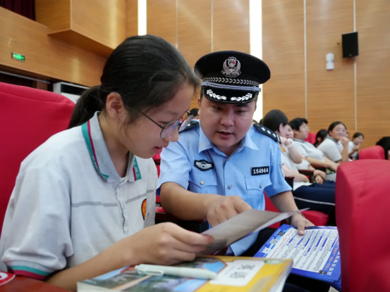 通过整合内外部资源,推动多警种联动开展反诈宣传。活动中,民警辅警通过向学生和家长发放反诈宣传册,在校园周边区域悬挂反诈条幅,面对面向师生和家长开展宣讲,重点剖析冒充子女索要费用、买答案改分数、虚假助学补助等常见骗局,提醒大家保持警惕、核实信息,避免财产损失。