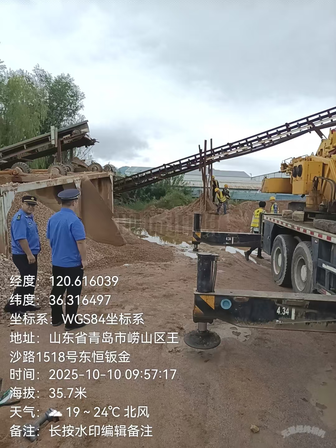 2025年10月10日,青岛市崂山区王哥庄街道办事处带领执法部门对姜家土寨村一家非法洗沙场开展联合执法行动,依法予以查处,充分展现了街道对破坏生态环境行为“零容忍”的坚定决心。