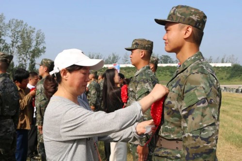 新兵家长为新兵戴上了鲜艳的大红花,叮嘱一定要安心服役、为家乡争光;新兵将手写家书交到家长手中,表达了立志从军、早传捷报的壮志豪情。