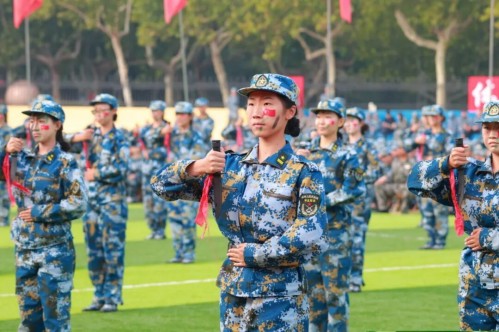 党委书记关延平发布指令后,各方队依次进行军训队列展示、刺杀操、捕俘拳、匕首操、战术演练等军事技能训练科目汇报表演。同学们动作整齐划一、口号铿锵有力、表演气势如虹,展现出良好的军事素养和训练成效,赢得现场阵阵掌声。