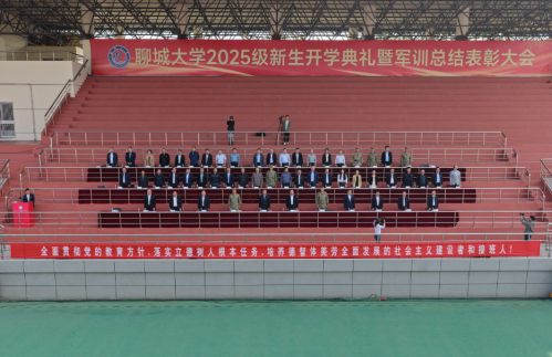 晴空万里、秋风送爽,聊城大学2025级新生开学典礼暨军训总结表彰大会在西校区田径场举行,7000余名参训新生英姿飒爽地展示军训成果,彰显了大学生奋发向上的精神风貌。学校党委领导班子成员,聊城军分区、71901部队、东昌府区人民武装部等单位领导出席大会。大会由党委常委、副校长赵明吉主持。