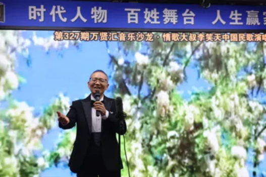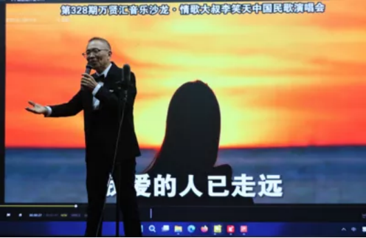 本次活动由知名商务主持人谭健仕与河北大学研究生范美琳联袂主持,他们对万贤汇人文沙龙举办23年的历史和“情歌大叔”李笑天做了简要介绍。李笑天是我国著名社会活动家、智库专家、诗人、词曲作家、音乐爱好者,曾经出版过20多部著作,涉及文学、财经、法律三大领域,他曾经兼任西北大学和中国政法大学客座教授,主持过40多场全国大型经济、文化、法治论坛,应邀到全国各地演讲、授课一千多场次,受众超过10万人次,他于2003年发起的万贤汇人文沙龙已经坚持23年,总参加人数已经超过1.5万人次。李笑天从小喜欢唱歌。早在他大学就读和担任高校教师期间就开始创作歌曲,40多年来完成20多首原创歌曲。李笑天热心社会文化传播事业,在忙碌的工作之余,始终坚持自学、练习唱歌。大学期间曾经得到音乐系徐行孝教授的指点,担任教师期间参加了声乐培训班,他善于自学,并积极参与各地社会文化、商务文化活动,曾经参与组织首届中国企业文艺调演、全国企业歌曲展演、全国企业跨界春节联欢晚会、童安格、赵传演唱会、音乐沙龙等文艺活动,还在加拿大、越南、日韩海上国际邮轮联欢会、海南旅游节、深圳旅游品牌论坛、企业家慈善晚会等公开演出多场次。他于2025年参加了为期2个月的声乐培训班,师从著名歌唱家、国家一级演员、中央民族歌舞团歌唱演员宋伶俐女士,对宋老师倡导的“身体歌唱法”深有领悟,本次演唱会算是他多年喜爱、练习、演唱民歌的一次汇报演出。