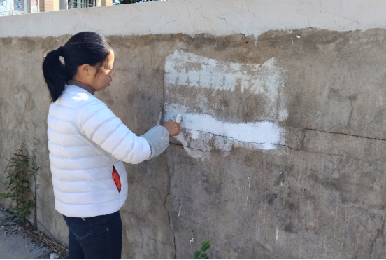 “小广告”不仅影响村庄美观,还含有很多的虚假诈骗信息,严重影响了村民们的生活质量和幸福指数,清理过程中,清理人员用油漆滚筒在墙面上留下道道刷痕,用实际行动为村居环境贡献力量。同时还向沿途村民宣传小广告的危害,呼吁大家共同维护村居环境,杜绝随意张贴行为。