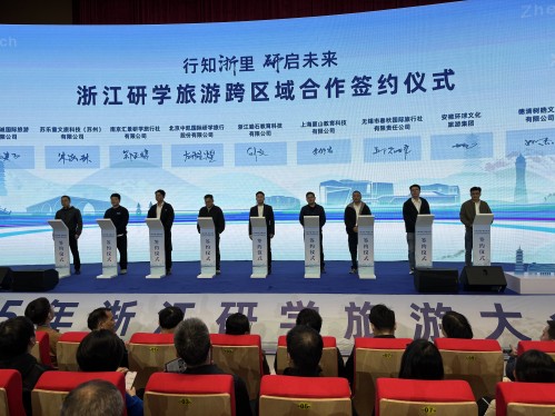 活动现场,公布了2025年全国研学旅游品质提升浙江试点单位名单及等级,开化根缘小镇研学实践教育营地等61家单位成功入围;发布了浙江研学旅游展示路线、精品课程和“浙江研学旅游自律倡议”;全国多家头部研学机构与企业还完成了研学旅游相关合作签约。通过此次签约,各方将打破地域壁垒,实现师资、课程、线路的跨区域共享,推动研学资源高效整合与市场协同发展,从而打造一批可复制、可推广的全国示范性研学营地。
