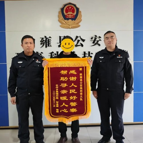 送别儿子返程后,陈某军立刻定制了一面锦旗,上书“感谢人民好警察 帮助寻亲暖人心”,郑重送到纳雍县公安局刑侦大队民警手中。
