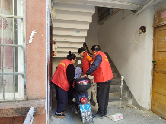 该小区楼道空间狭窄,电动车随意停放不仅妨碍通行,更存在消防安全隐患。整治过程中,公益性岗位人员逐栋排查,将停放在楼道内的电动车统一移至指定停车区,并清理楼梯间堆放的各类杂物,有效拓宽楼道空间,消除安全隐患。