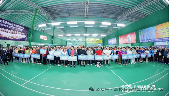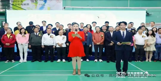 开幕式上的颁奖环节温情满满。由天城会务赞助的参赛纪念杯,承载着对每支队伍的敬意与期许,程岗、林明星、董春等嘉宾依次为参赛队伍代表颁发奖杯,见证这份跨越校际的团结与荣光。随后,孙正平与组委会主席吴贵仲、总顾问阎三海、赞助商代表钟雨、支持单位代表吕立彪、苏文贞等嘉宾共同挥拍开球,洁白的羽毛球腾空而起,正式拉开了本届联赛的竞技序幕。
