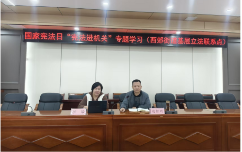 为深入学习贯彻习近平法治思想,大力弘扬宪法精神,在第十二个国家宪法日来临之际,江西省景德镇市昌江区西郊街道司法所联合人大基层立法联系点开展“宪法进机关”主题活动,特邀昌江区人民代表大会法制和监察司法委员李敏给街道机关干部宣讲。