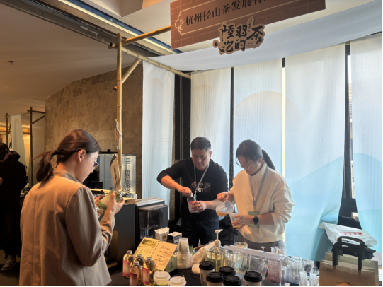 在产业展览区,全国近30家抹茶企业集中亮相,展出抹茶在新茶饮、烘焙、功能食品等领域的创新产品。从抹茶巧克力、抹茶冰淇淋到抹茶瓶盖、抹茶个护产品,展品琳琅满目,凸显抹茶作为“健康+时尚+文化”载体的多元可能性。余杭本地企业如杭州径山茶发展有限公司、杭州银泉茶业有限公司、浙江骆驼九宇有机食品有限公司等“径山抹茶六小龙”,更是以科技赋能、标准引领、跨界融合的实践,展现区域产业的集群实力。