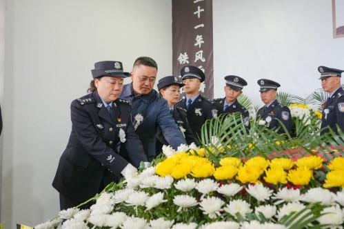 参加仪式全体人员肃立默哀、鞠躬致敬、表达哀思。在场民警手托警帽、眼含热泪,深切缅怀昔日战友。那一刻,没有言语,只有深切的缅怀与无声的敬礼,在空气里静静流淌。