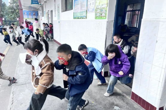 在演练环节中,随着急促的警报声划破校园,全体师生迅速行动。在班主任及引导员的指挥下,大家弯腰低姿、手捂口鼻,沿着预定路线快速向操场安全区域疏散,仅3分钟便完成全体师生的安全集结与人数的清点。