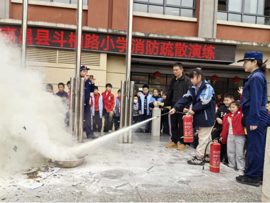 为扎实推进校园消防安全工作,提升师生应急处置与自救互救能力,2025年12月9日,南昌县斗柏路小学以“实战化”标准组织消防疏散演练及实操灭火活动,南昌县消防大队全程参与指导,为活动保驾护航。