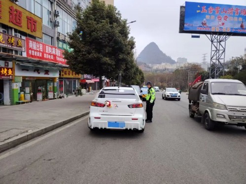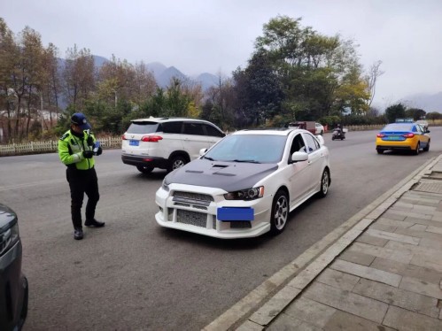 12月10日上午10时30分许,六盘水市公安局交警支队直属一大队机动训练中队执勤人员在明湖路韭菜坪岔路口执行交通保畅任务时,发现一辆车牌号为渝A31***的小型轿车外观存在异常。经初步观察,该车辆的轮毂样式、尾翼等部件与原厂配置有明显差异,涉嫌非法改装。执勤人员立即示意该车靠边停车,并依法对车辆进行详细核查。经仔细查验比对,确认该车前、后保险杠、引擎盖、尾翼、排气管及轮毂等多处均进行了非法改装。随后,交警通知所属辖区中队民警抵达现场,对驾驶员依法作出处罚。