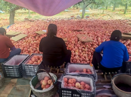 “我家早熟苹果套了4万袋,前期受干旱影响,产量有所下降,预计能产一万多斤苹果,今年价格高,大概能收入个四五万块钱。晚熟富士预计还能卖十五六万,一年收入二十多万,我很满意。”义家塬村民贺刚一边忙着搬运分拣好的苹果,一边高兴地说,憨厚的笑容在晨光里映成了一朵花。