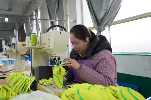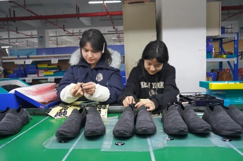 贵州宏鑫鞋业有限公司车间内,100多名员工正在赶单。该公司主产运动鞋,产品远销日本,今年的生产目标是产鞋40万双、产值1300万元,目前已经达标。公司现在还有30万双的生产订单,排期已排到明年5月。