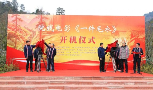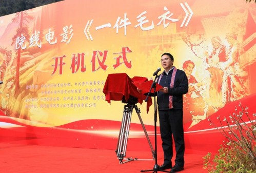 红绸飘落,镜头开启。1月7日,红色题材电影《一件毛衣》开机仪式在剑河县镇江村举行。