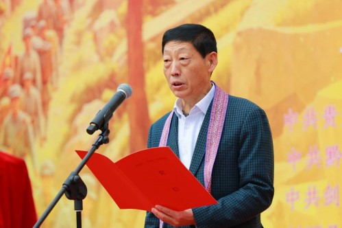 迟锋毅宣读了贵州省老区建设促进会的贺信,衷心祝愿电影《一件毛衣》拍摄顺利、圆满成功,期待这部作品以细腻的笔触、动人的画面,让“毛主席送毛衣”的故事传遍大江南北,让长征精神在新时代熠熠生辉。