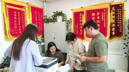 看,调委会驻市场监管调解员正在热情为来访人员释法解惑搞好“双节”消费者调解服务。