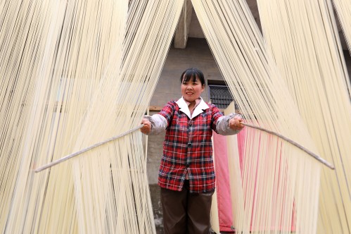 安伟涛、冯彦娜夫妻在晾晒挂面