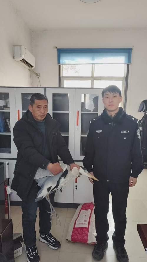 近日,成武县公安局九女集派出所与热心群众携手,成功救助一只国家“三有”保护动物——苍鹭,共同守护了生态环境。