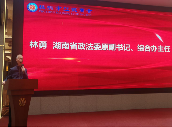 湖南省委政法委原副书记林勇在讲话中,对株洲市江苏商会的年度活动及江苏企业家的信心与活力表示赞赏。他指出,近年来商会充分依托株洲优势,在商会建设、会员发展、实体经济推进及地方社会经济建设中成效显著,鼓励全体江苏企业家继续发扬智慧与团结精神,克服困难、奋勇前行,共创美好未来。