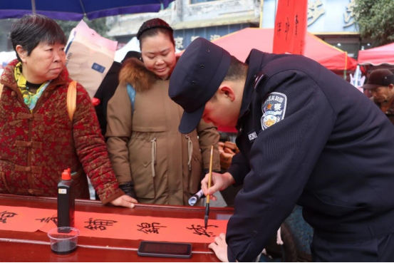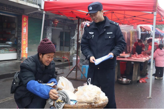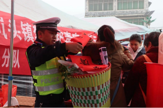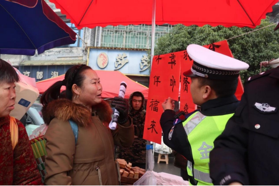 腊月岚头风“警”盛,摊主送福赠平安