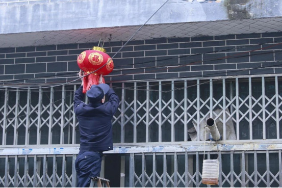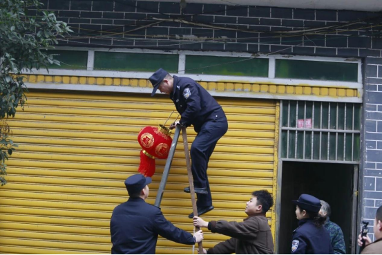 民警亲手将那大红灯笼