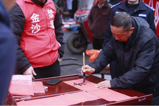 现场写起“反诈春联”: