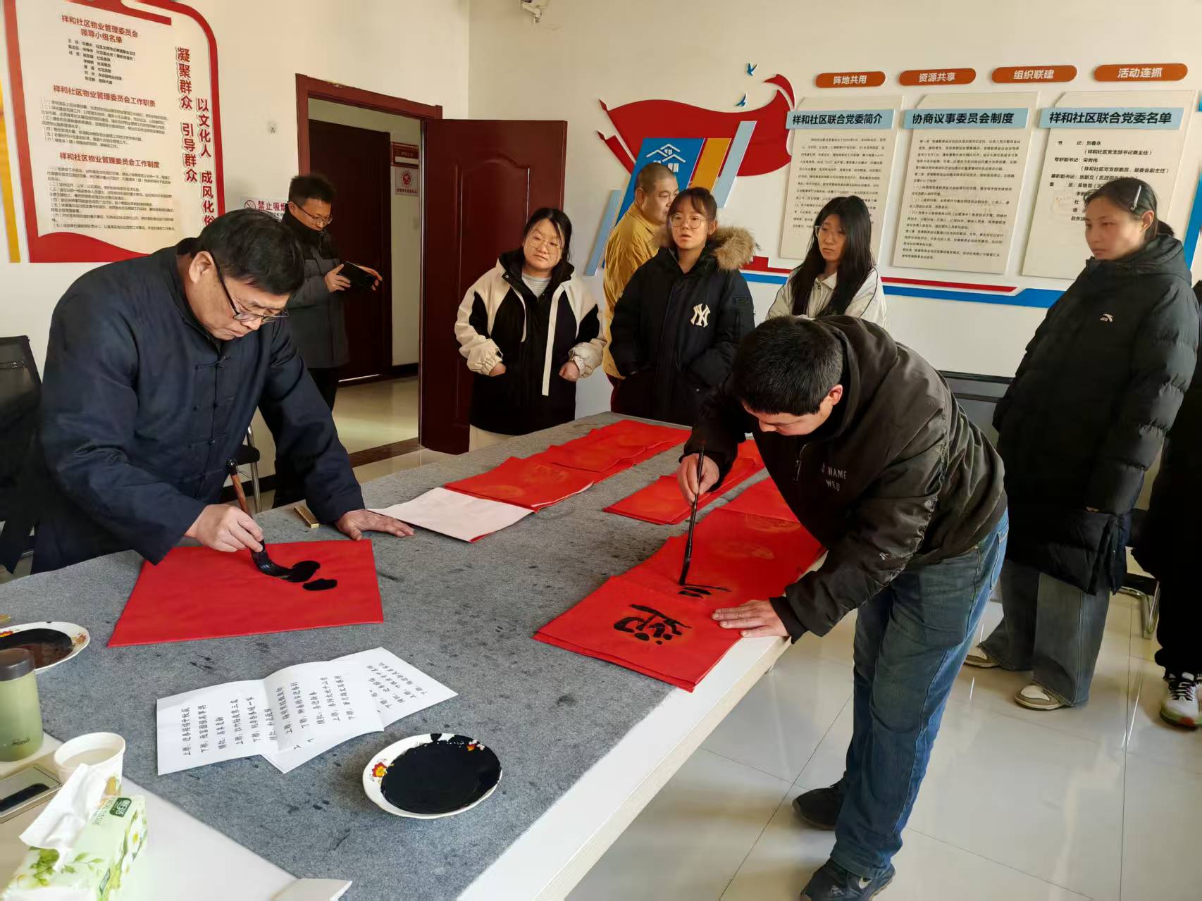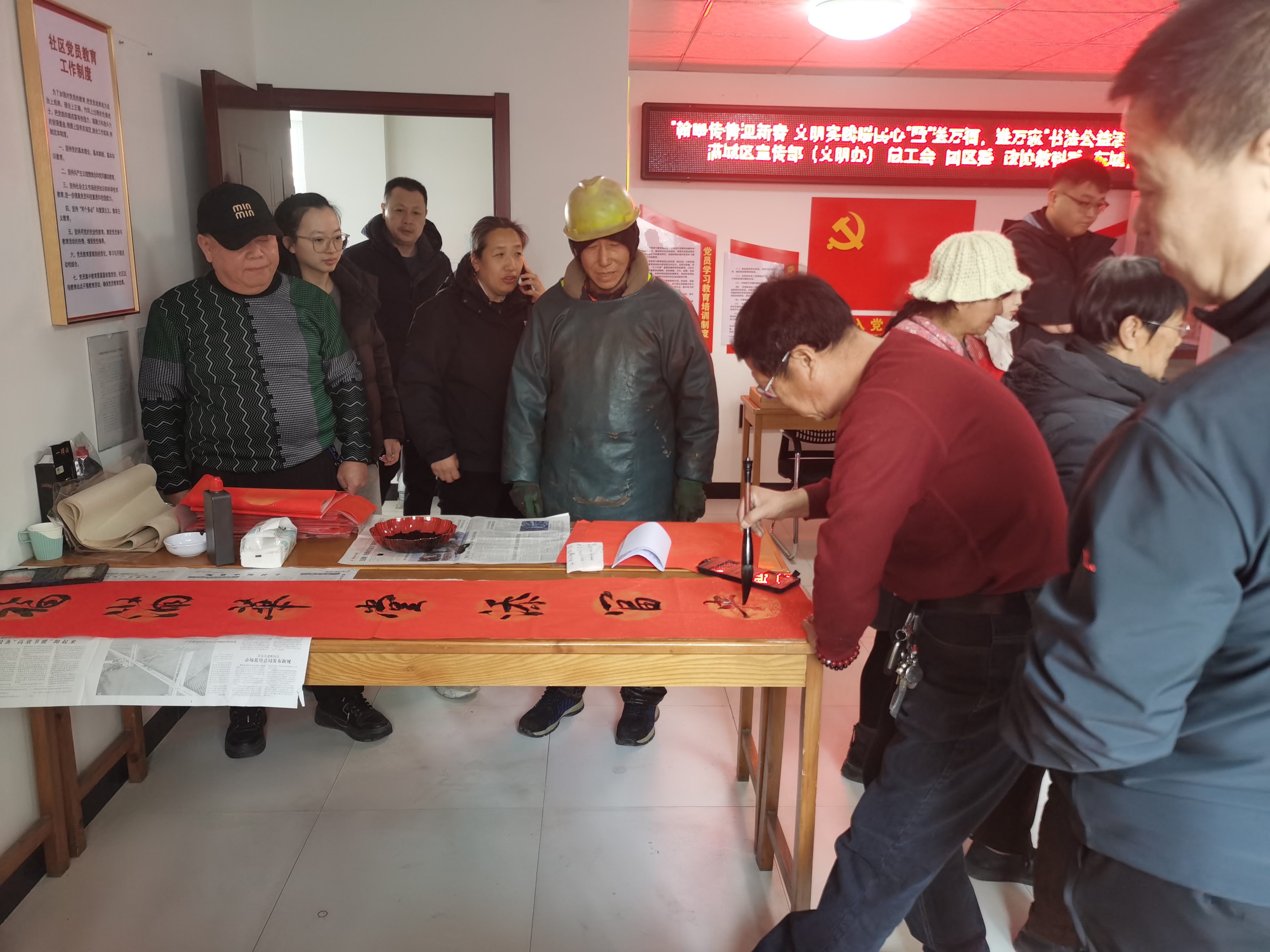 对于部分社区内的困难家庭、老党员和退休教师等,书法家和社区工作人员还特意将春联和“福”字装裱或整理好,亲自送到他们家中,让节日的祝福传递到每一个角落。