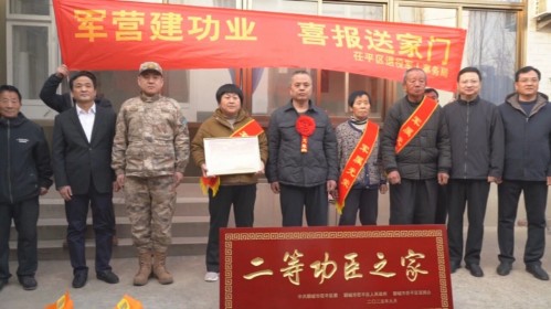 近日,茌平区人武部、区退役军人事务局联合开展现役军人立功喜报集中送达活动,为荣立二等功的张士彬同志和三等功王衍国同志的家庭逐一送上喜报。区人武部领导参加活动。
