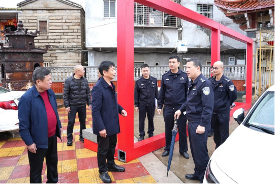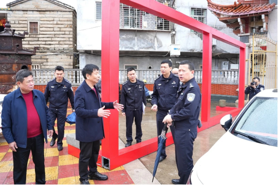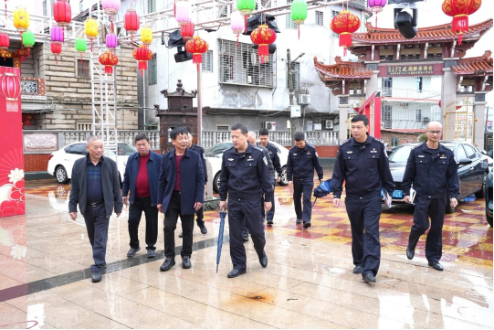 恰逢雨天,南安市公安局领导和罗东派出所所长冒雨前来,实地指导检查安全措施落实,筑牢灯节安全防线。
