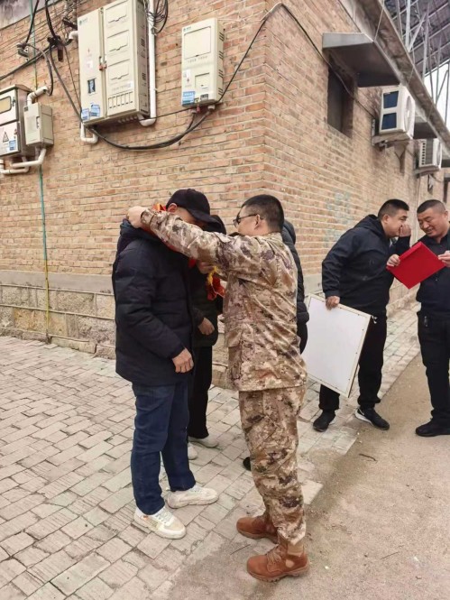 活动现场,锣鼓铿锵震天,村民们纷纷驻足围观、拍手喝彩,共同见证这一光荣时刻。慰问组负责人向杨占雨家属致以热烈祝贺:“杨占雨同志荣立个人三等功,是他扎根军营、奋勇拼搏的成果,是大杨村的骄傲,更是姜楼镇全体群众的荣耀!”随后,慰问组郑重送上立功喜报与慰问金,为家属佩戴荣誉绶带,并详细介绍了杨占雨在部队的优异表现——他始终牢记军人使命,刻苦钻研军事技能,在各项战备训练和任务执行中表现突出,以过硬本领和担当精神践行了军人的初心使命,用实干与汗水斩获荣誉。
