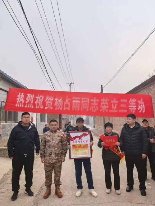 时序更迭启新章,喜报传情暖民心。新春的喜庆氛围尚未褪去,一份镌刻着荣誉与荣光的立功喜报,送至姜楼镇大杨村现役军人杨占雨家中,将党和政府的尊崇与关怀,传递给立功军人及家属,让拥军优属的暖流在乡土间涌动。