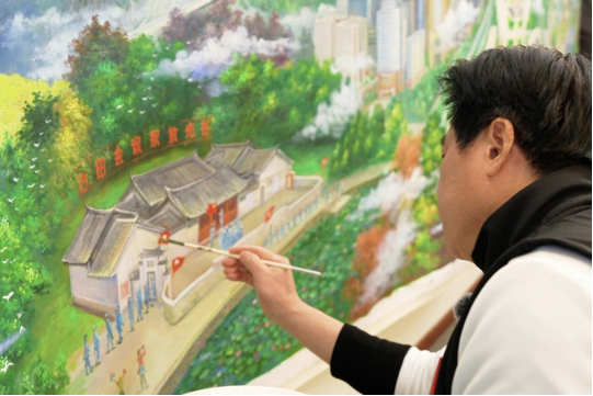 作为一名军旅书画家,戴文军从未放下手中的画笔。在龙岩的日子里,他一边宣讲禁毒,一边用画笔和毛笔记录着这片土地上的感动。