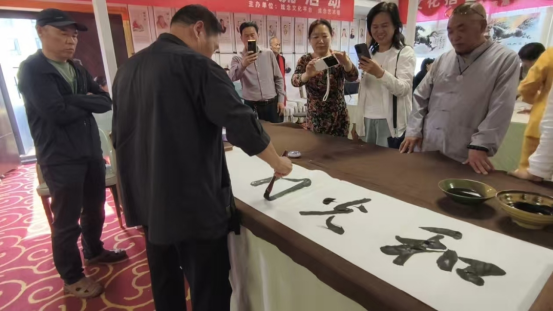 中国书法家协会会员李海山现场创作两幅书法作品,笔墨苍劲、气势恢宏,笔力稳健、气韵十足,展现出炉火纯青的艺术造诣,合影留念。