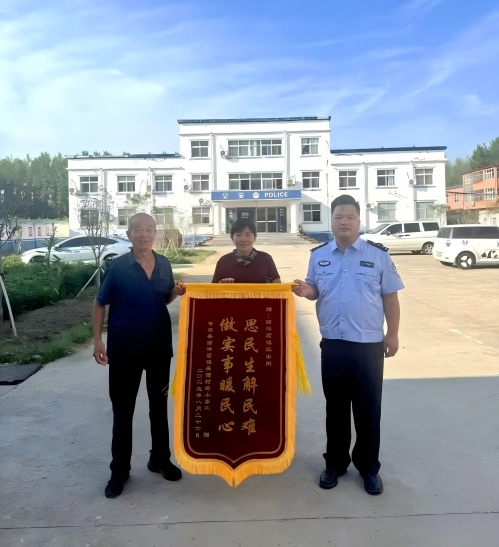 (崔义峰 毕涛) 近日,平舆县西洋店镇村民李某作夫妇将一面印有“做实事暖民心 思民生解民难”的锦旗送至西洋店派出所,向民警解阳豪及“三源三调”机制表达诚挚感谢。一起因停车棚修建引发的邻里纠纷,在多部门联动调解下圆满化解,彰显了基层矛盾化解机制的高效与温度。
