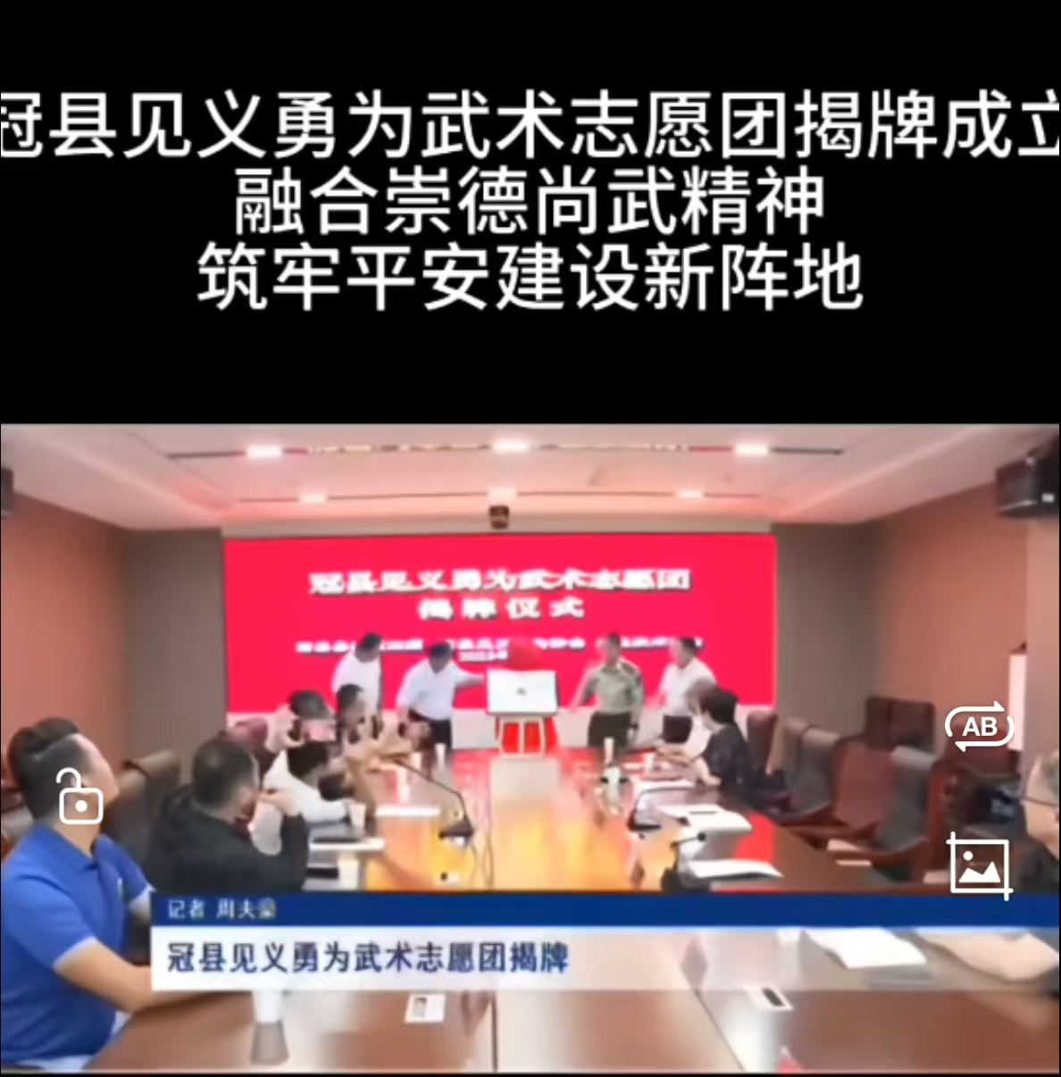 9月17日,冠县见义勇为武术志愿团揭牌仪式在热烈的氛围中隆重举行,这标志着冠县在平安建设与弘扬正气领域迈出了崭新的一步。县委常委、政法委书记任希恒,县委常委、人武部政委王伟出席仪式,并共同为志愿团揭牌,见证这一具有深远意义的时刻。
