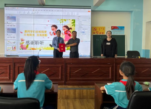 副校长李燕说:“同学们,希望你们把于“老师”的话牢牢记在心里,变成保护自己的超级铠甲,她像一个指南针,帮你在成长路上永远分清对与错、是与非、黑与白,用好今天学到的本领,努力做工农小学最文明、最闪亮的那颗星!”