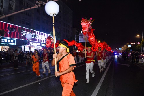 拜月礼毕,市体育中心瞬间沸腾,由宜春市十个县市区选送的20条火龙,伴随着激昂的锣鼓声,依次腾空而起,开启了盛大的“火龙追月”巡游。长长的火龙队伍所到之处,欢呼声、喝彩声此起彼伏,市民游客纷纷驻足拍照,沉浸在节日的欢乐氛围之中。