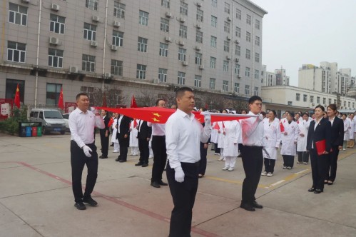 仪式现场庄严肃穆,鲜艳的五星红旗在晨光中静静矗立。随着雄壮激昂的《义勇军进行曲》奏响,护旗手迈着铿锵有力的步伐,昂首阔步走向旗杆,将国旗稳稳固定。全院职工肃立注目,目光紧紧追随缓缓升起的五星红旗,心中涌动着对祖国的无限崇敬与热爱。飘扬的国旗与洁白的医护制服交相辉映,构成了妇幼院清晨最庄严、最动人的画面。