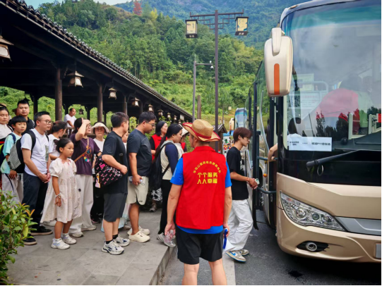 守护的故事,最终由一个个鲜活的瞬间定格。在樟涧停车场接驳点,一名小游客因酷暑中摄入过多冰淇淋而呕吐不适,现场值班人员立刻上前帮忙清理,并第一时间联系驻点医务人员,让孩子很快转危为安;另一位从衢州自驾而来的游客,不慎与侄子一家失联,手机又遗忘在车上,正当他焦急万分时,工作人员掏出自己的手机,帮助他顺利联系上了家人。在华坛山镇汽车站接驳点,一名游客中暑头晕,华坛山镇卫生院工作人员为其测量血压并发放藿香正气水。这些微小的举动在国庆期间每天都在发生,却是华坛山服务温度最生动的体现。