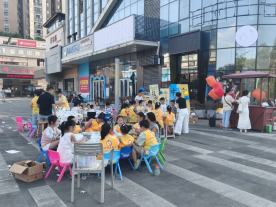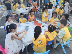 10 月 6 日下午,江西省景德镇市昌江区西郊街道汪王庙社区联合以琳文画在泰豪瓷都中心广场共同举办“月满中秋 喜迎国庆 童趣游园乐不停” 中秋儿童主题活动,众多儿童与家长踊跃参与,共享节日欢乐。