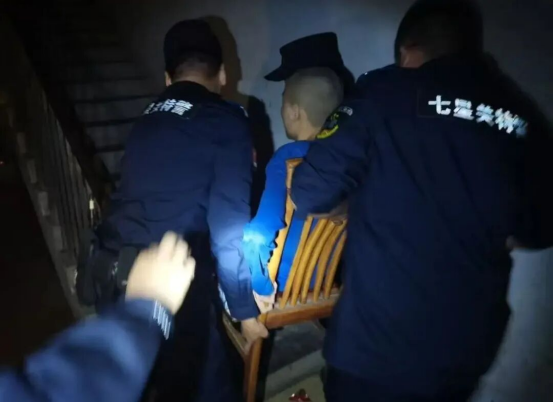 “大家动作再轻一点,一定要护好孩子的脚!”民警低声叮嘱。话音未落,三名队员已默契地围拢上前,弯下腰,小心翼翼地合力将孩子与矮凳稳稳抬起。