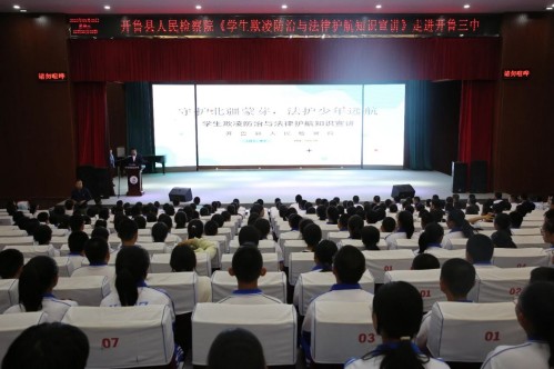 为筑牢未成年人法治安全防线,守护“蒙芽”茁壮成长, 9月26日,开鲁县人民检察院未检团队走进开鲁县第三中学。未检办负责人林宁以“大朋友”的身份,为全体初一新生带来了一场主题为《学生欺凌防治与法律护航知识》的特别对话,让法治阳光照亮青春起点。