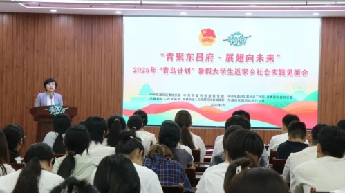 为深入贯彻落实共青团联系服务青年工作要求,充分发挥共青团桥梁纽带作用,进一步深化“青鸟计划”品牌效能,搭建青年人才与家乡沟通的双向平台,中共东昌府区委组织部、中共东昌府区委宣传部、中共东昌府区委社会工作部、共青团东昌府区委、东昌府区人民武装部、东昌府区人力资源和社会保障局、东昌府区国防动员办公室联合开展“青聚东昌府·展翅向未来”2025年“青鸟计划”暑假大学生返家乡社会实践见面会。