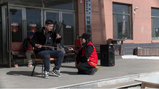 随后,魏桂鹏深情演唱了歌曲《唱支山歌给党听》。那悠扬的歌声在医养服务中心内回荡,勾起了老人们对往昔岁月的无限回忆。紧接着,民盟艺术团副团长、国家一级演员李宝泉朗诵了《沁园春·雪》。他的朗诵气势磅礴,字正腔圆,让在场的每一个人都感受到了中华诗词的魅力。