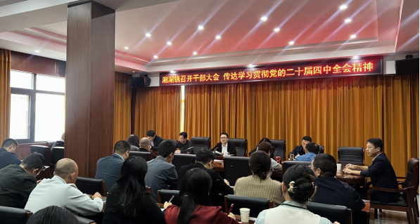 10月28日,江西省浮梁县湘湖镇召开干部大会,传达学习党的二十届四中全会精神,贯彻落实全省、全市、全县领导干部会议精神,安排部署全镇学习宣传贯彻工作。镇党委书记朱燕杰主持会议并作讲话,镇党政班子成员,各部门负责人及各村(社区)党支部书记参加会议。